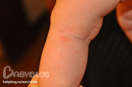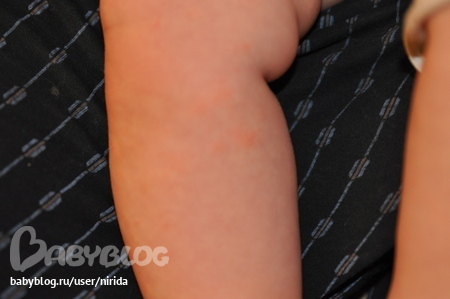 ![]() Появились красные шершавые пятна, + бесцветные точечки шероховатые. |